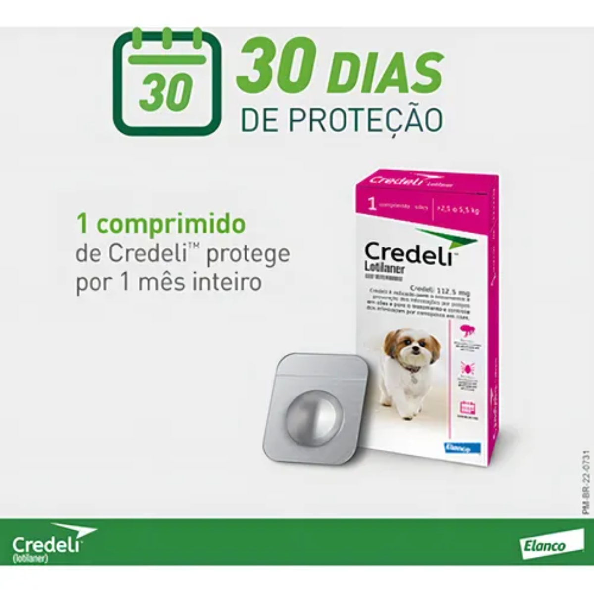 Credeli 56mg é um comprimido mastigável indicado para o tratamento e prevenção de infestações por pulgas e carrapatos em cães de 2,5kg a 5,5kg. Sua fórmula com Lotilaner oferece ação rápida e eficaz, começando a eliminar as pulgas em até 2 horas e protegendo o seu pet por até 30 dias.
